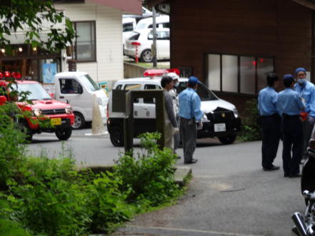 下山途中、物々しいパトカーのサイレンが鳴り響いていましたが、下りてくると登山口で警察官と何らかの関係者が7,8人来ていました。 遭難者がいたようです。 ポピュラーな金剛山ですが、過去にも何人か遭難しているようです。