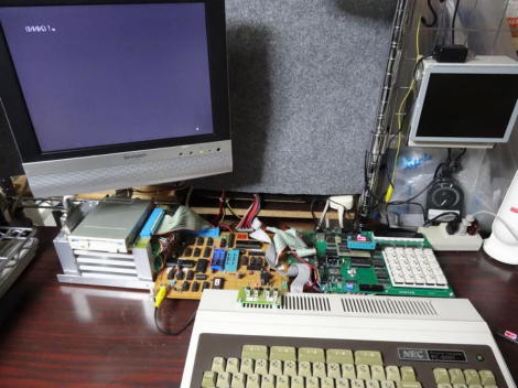 A 作成したシステムディスクを再度、FDDに差込み、 予め作成したMCPNIOのROMをND80ZVのROMソケットに差し、電源を入れる。
