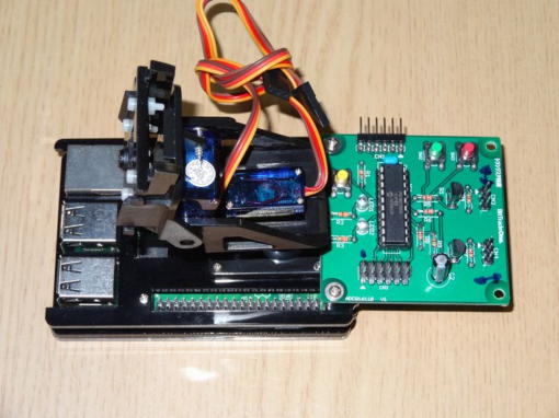 今回は、サーボモータ制御ボード(写真1)を組立て、前回製作したカメラマウントと同様に写真2のようにラズパイに取付ました。 思っていたより何かあっけない感じですが、これでハード関係の製作は終了です。