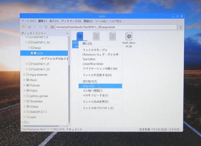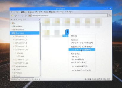 ダウンロードしたTR1611P.zipファイルは、写真7のようにGUIベースのファイルマネージャで確認し、「ここにファイルを展開」として解凍すると 写真8のように2016年11月号の各章の関係ファイル一式が作成されますが、ファイルネームが文字化けしていましたので分かりやすい名前(ファイル名には日本語を使用しない。)に修正しました。