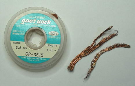 4. いよいよ最大の山場の「吸取り」ですが、トラ技のP135では写真8のように吸取り線の幅は1.5mmのものを使っていますですが、当方が持ている吸取り線の幅は3.5mmのものでした。