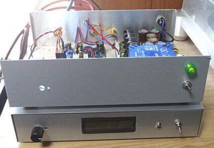 写真3は、ケース前面のアセンブリの状況ですが、 「ES9038Q2M」DACのボリウム用の穴が開いたままですが、何かシール等を張って処理するつもりです。 写真4は、ケース後面のアセンブリの状況ですが、元のまま使ってます。